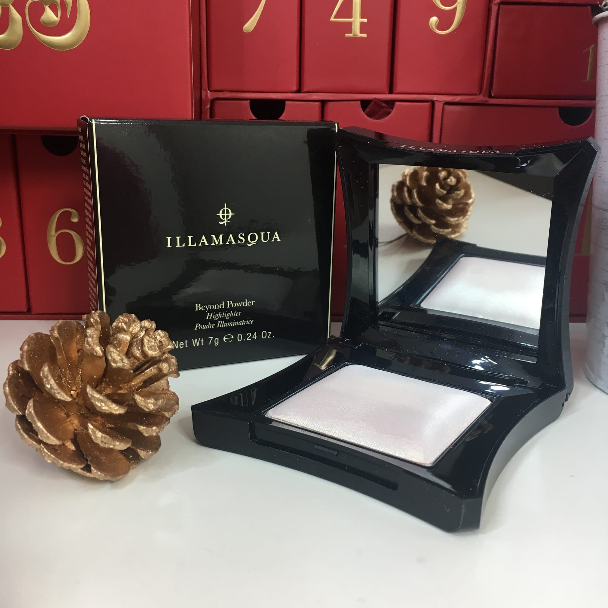 They saved the biggest and the best until last. A full size Illamasqua highlight compact in shade 'Deity'.