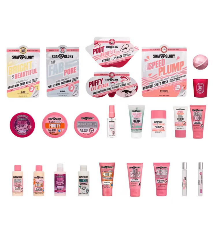 Inside the Soap & Glory Beauty Advent Calendar we can find: