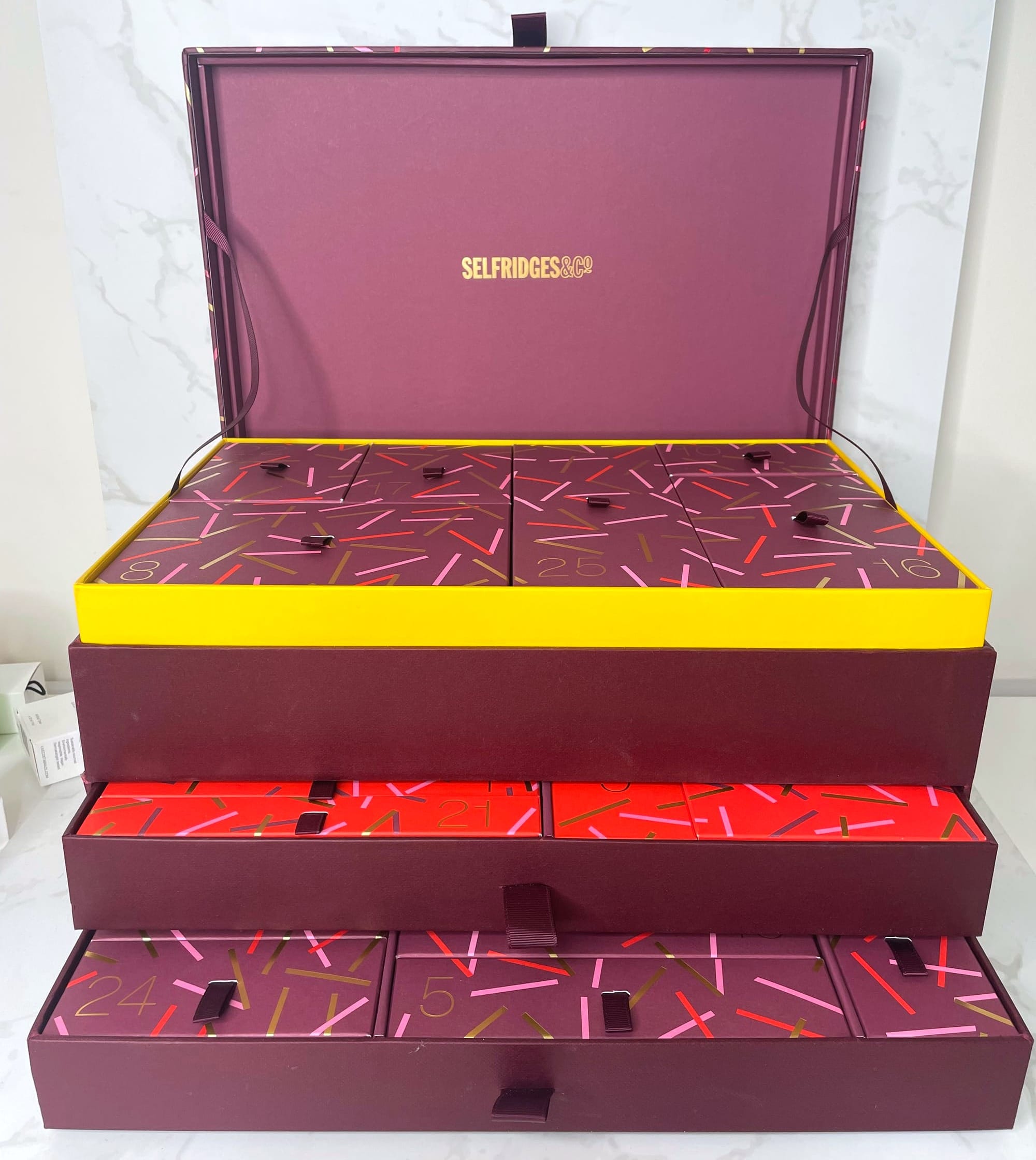 Housed in a chest-style box with ribbon pulls and sturdy drawers, the design is a major improvement from the tall, narrow calendars of the last two years. It’s also practical enough to be reused well beyond December.
