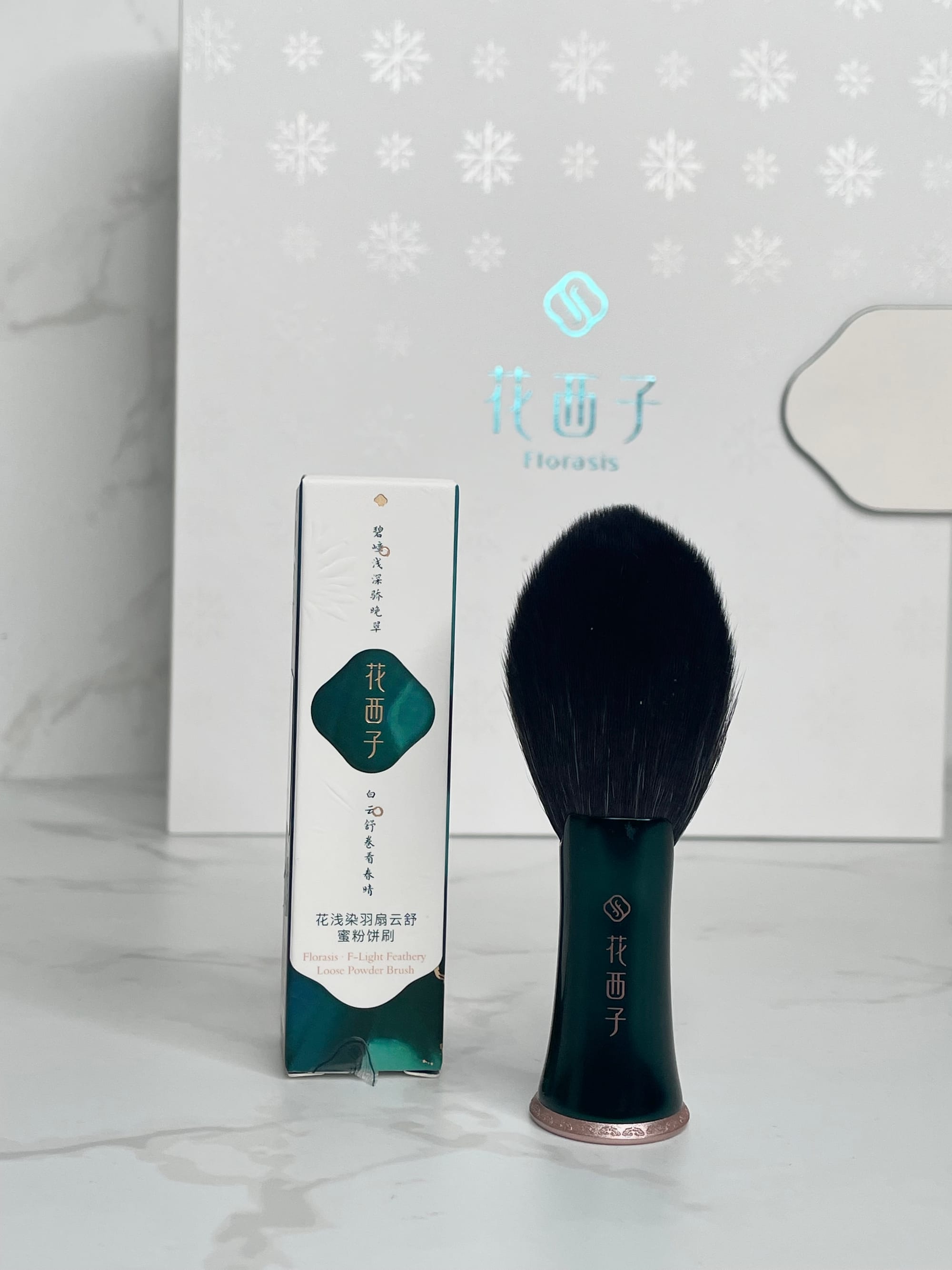 The Loose Powder Brush included in the calendar is inspired by traditional Chinese feather fans, combining artistry with functionality. Its unique shape hugs facial contours perfectly, making it ideal for applying setting powder, blush, or highlighter.