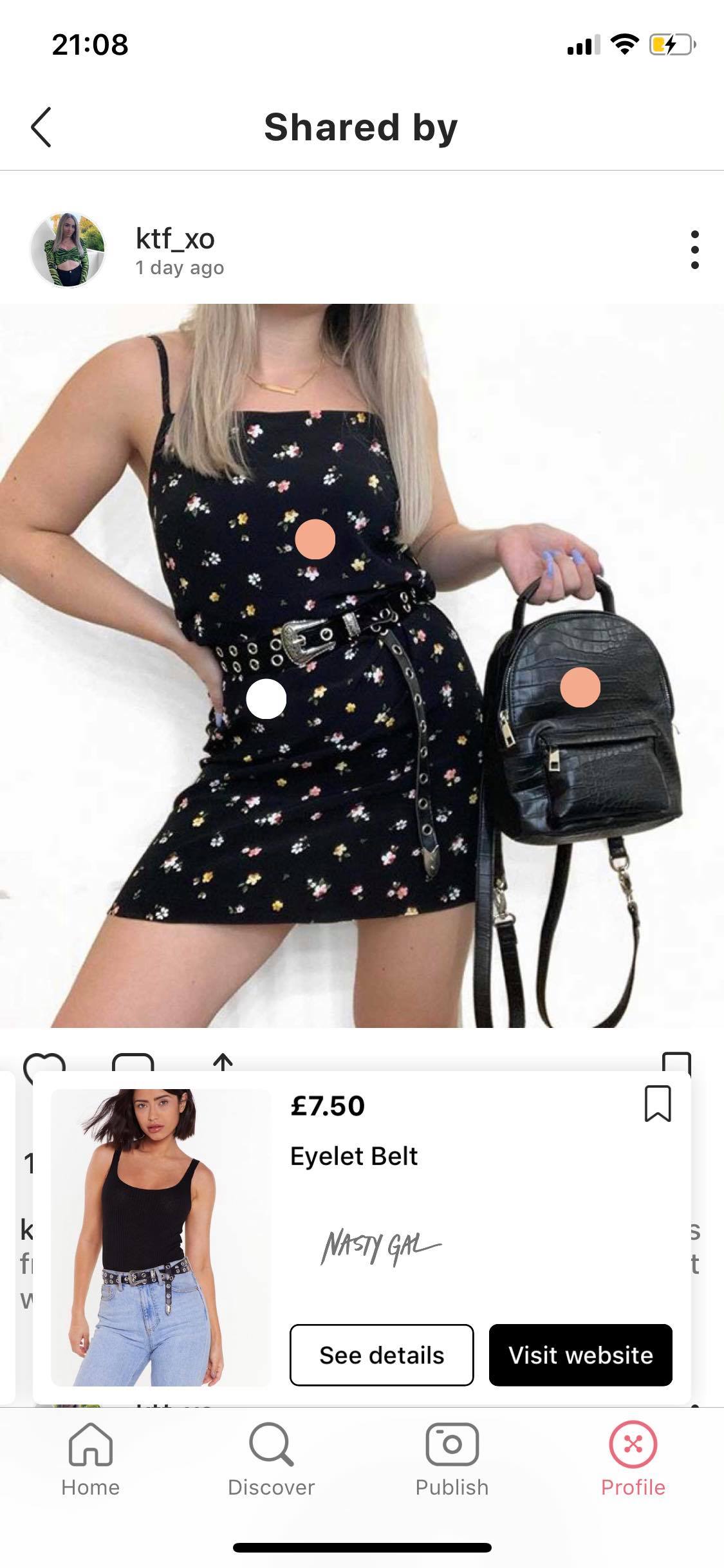 21 buttons was founded in 2015 and it's basically an app which allows you to post photos of your outfits. The idea is that you tag each item in the photo, with a link to the item online so your followers can see where it was from and can purchase it themselves. For each item you tag, where someone purchases that item and there is an affiliate partnership in place, 21 buttons generates revenue for that sale… and shares it with you!