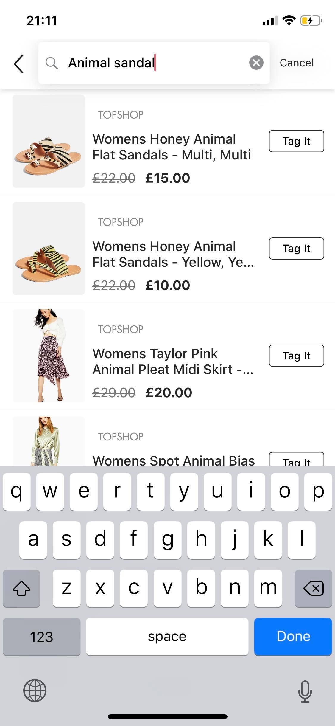 Once you’ve chosen the brand, select the item by typing in its name at the top of the screen. I sometimes find that this can be a little hit and miss - sometimes the item is either not in the list or it appears miles down the list of items (bit of an exaggeration but you get my point). So a quicker way to find an item if it doesn’t come up immediately is to click ‘search the web’. This takes you to Google where you can search the actual website which sells your item and then tell 21 buttons that you have found the item and wish to tag it.