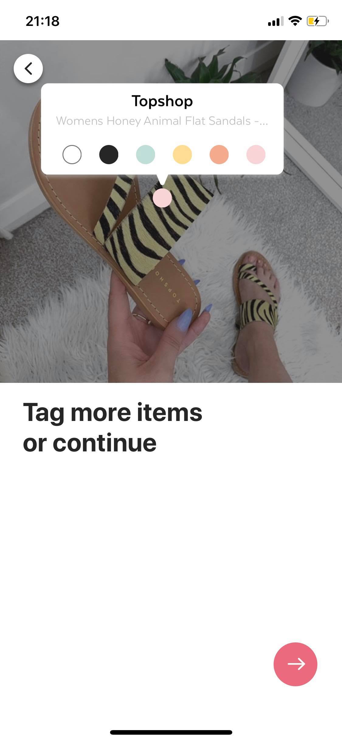After you’ve chosen the item and the tag has been added, the next screen shows you details of the item such as price, name, brand etc. If you’ve linked to an item from the web rather than choosing it within the app, then these fields might be blank so just add in the price (don’t forget to check you’ve selected the right currency), give it a name and let people know what brand it is.